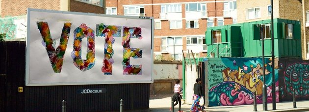 And right on cue, for our own elections comes UK artists, Bob & Roberta Smith, Jeremy Deller, Janette Parris and Fatima Begum. They have come together to create works incorporating the word 'vote'.
